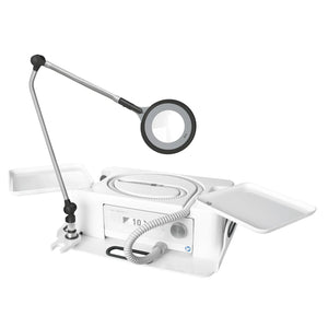 - Ofrece espacio para la lámpara de aumento móvil PODOLOG CIRCLE S así como un cable alargador y tiene compartimentos de almacenamiento integrados hechos de plástico ABS resistente a los impactos, higiénico y fácil de limpiar. Gracias a sus dimensiones compactas es fácil de transportar a cualquier lugar.