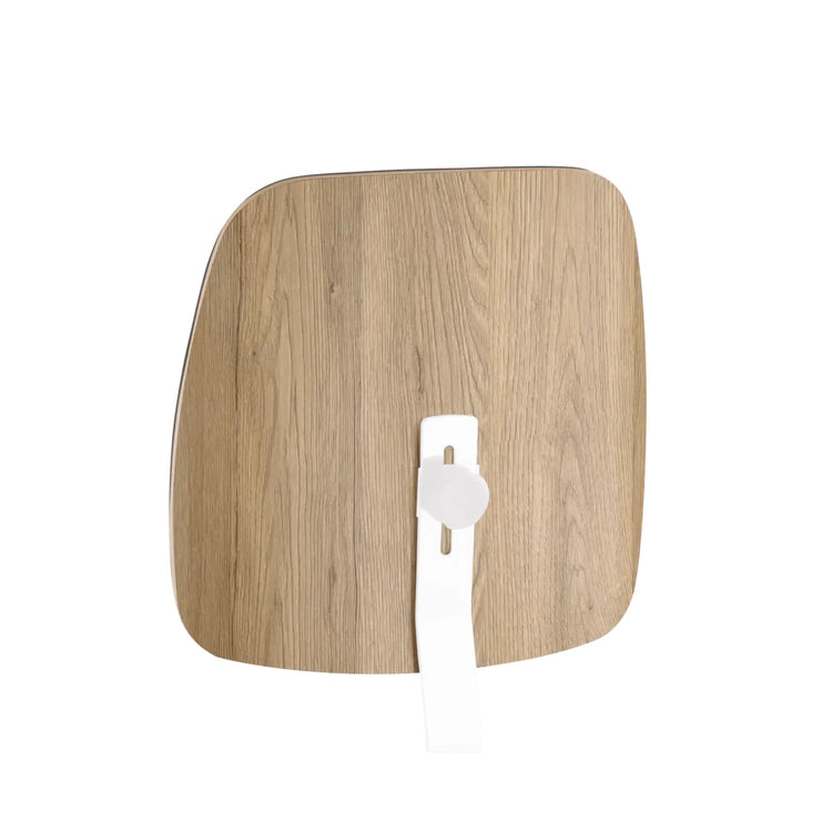 Respaldo alto de madera moldeada con soporte acolchado suave. Soporte elástico de acero inoxidable con regulación de altura.