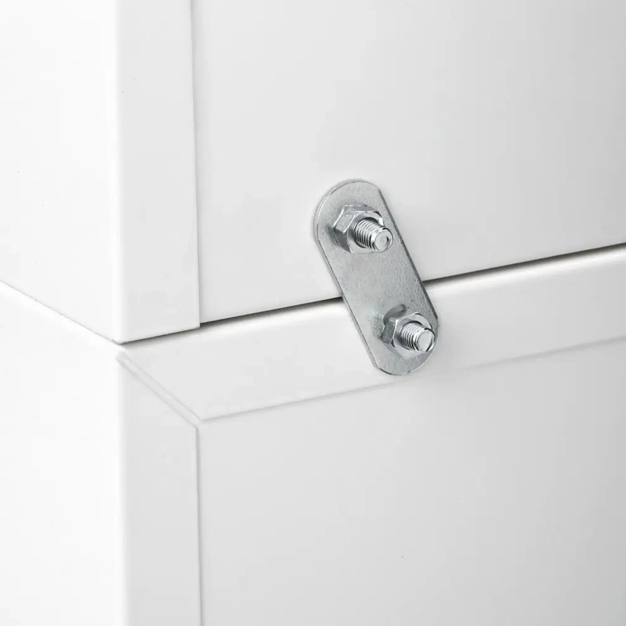 • Les boîtes peuvent être empilées et vissées ensemble à l'arrière par des sangles en acier.