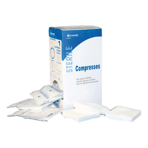 7.5 x 7.5 cm: 8 ply (18x30) 50 bags of 10 compresses = 500 pieces